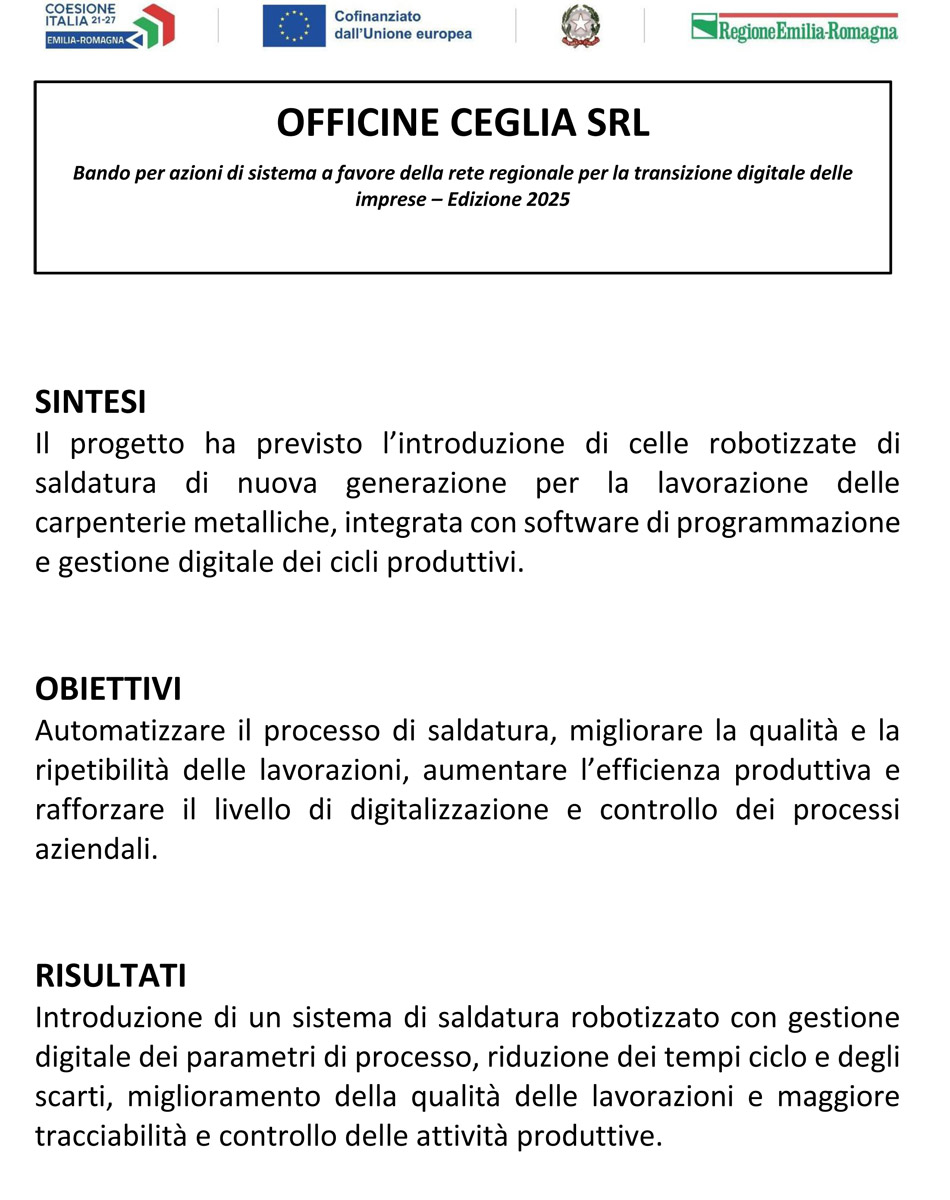 Automazione e digitalizzazione del processo di saldatura nelle Officine Ceglia